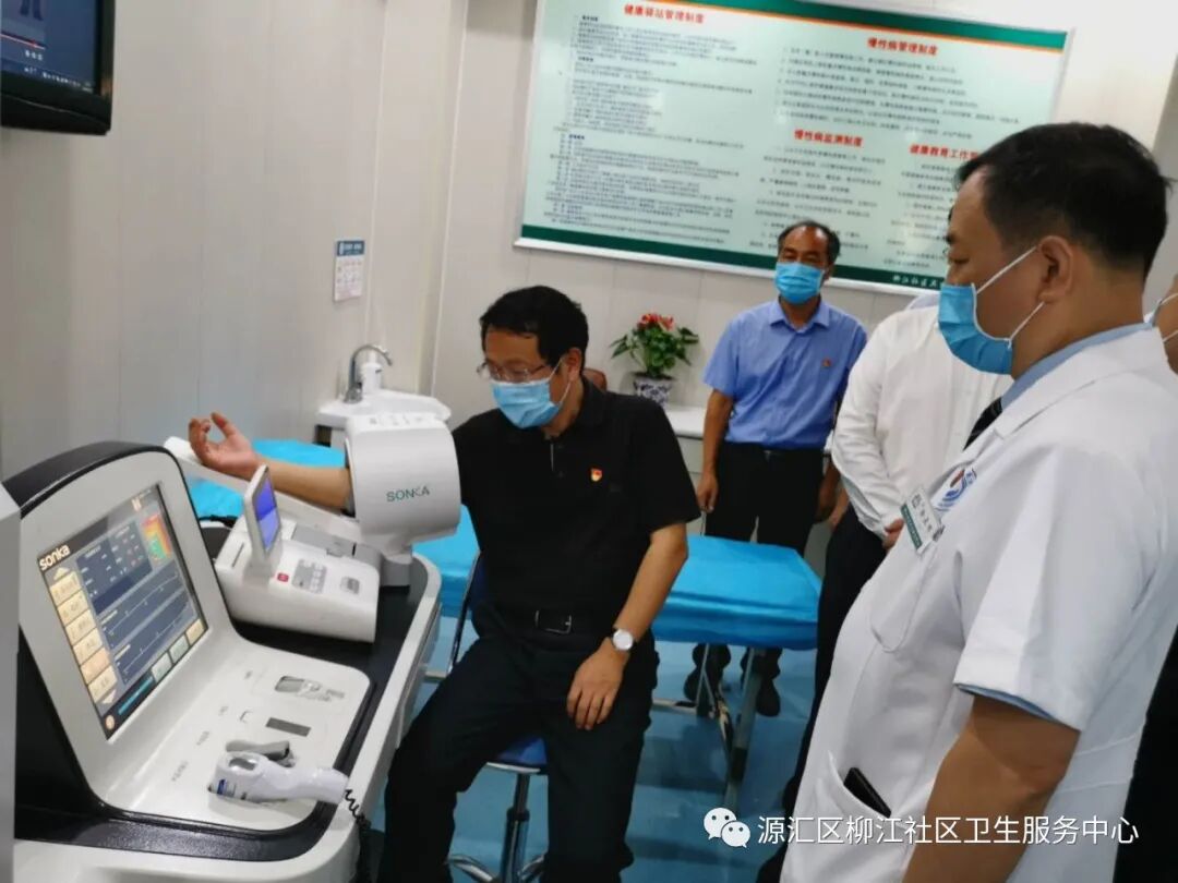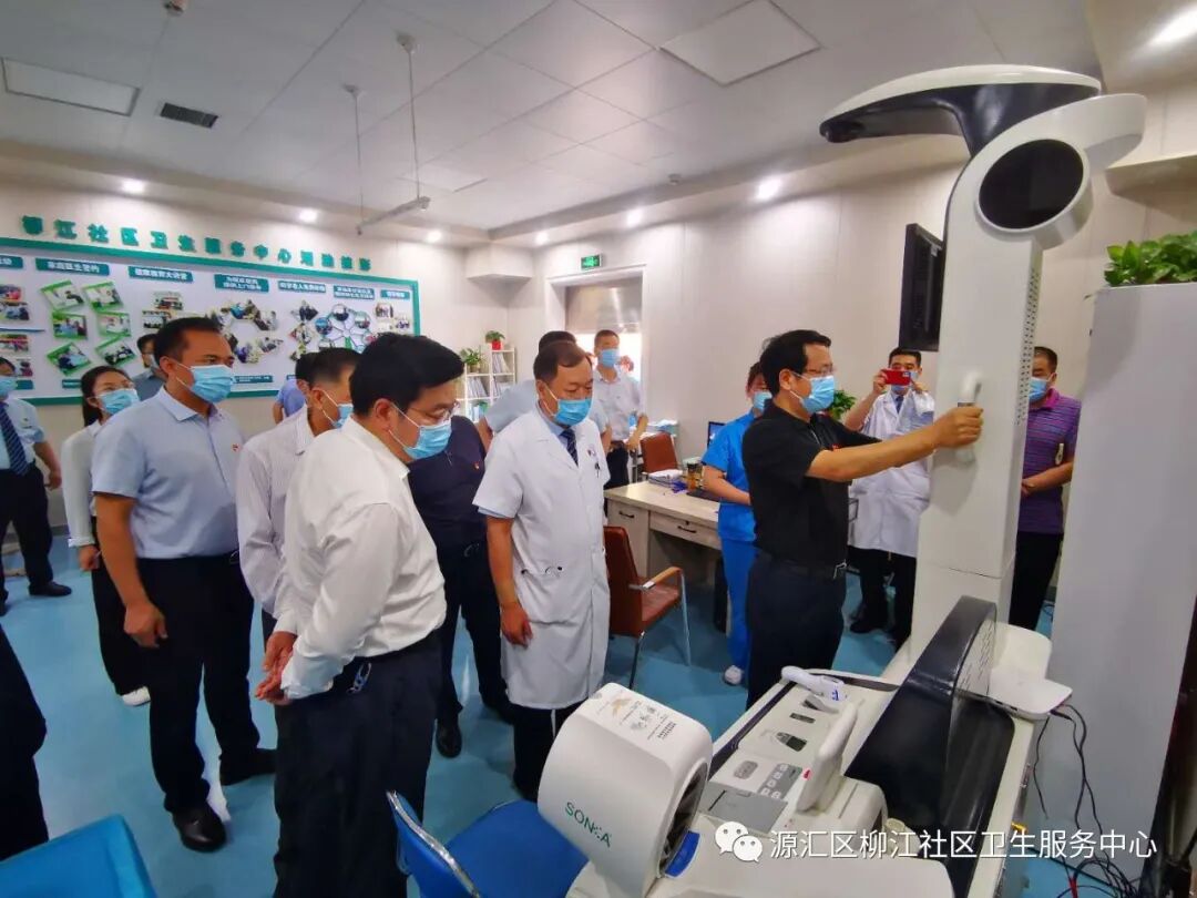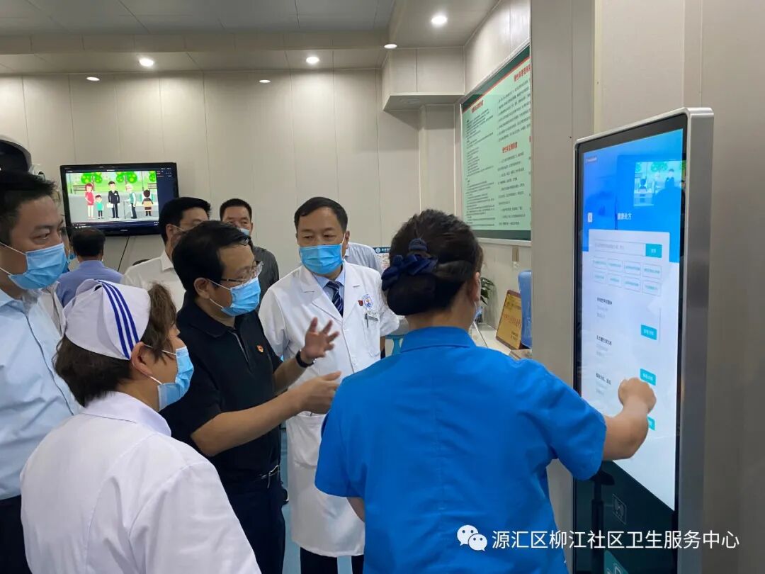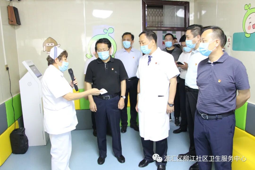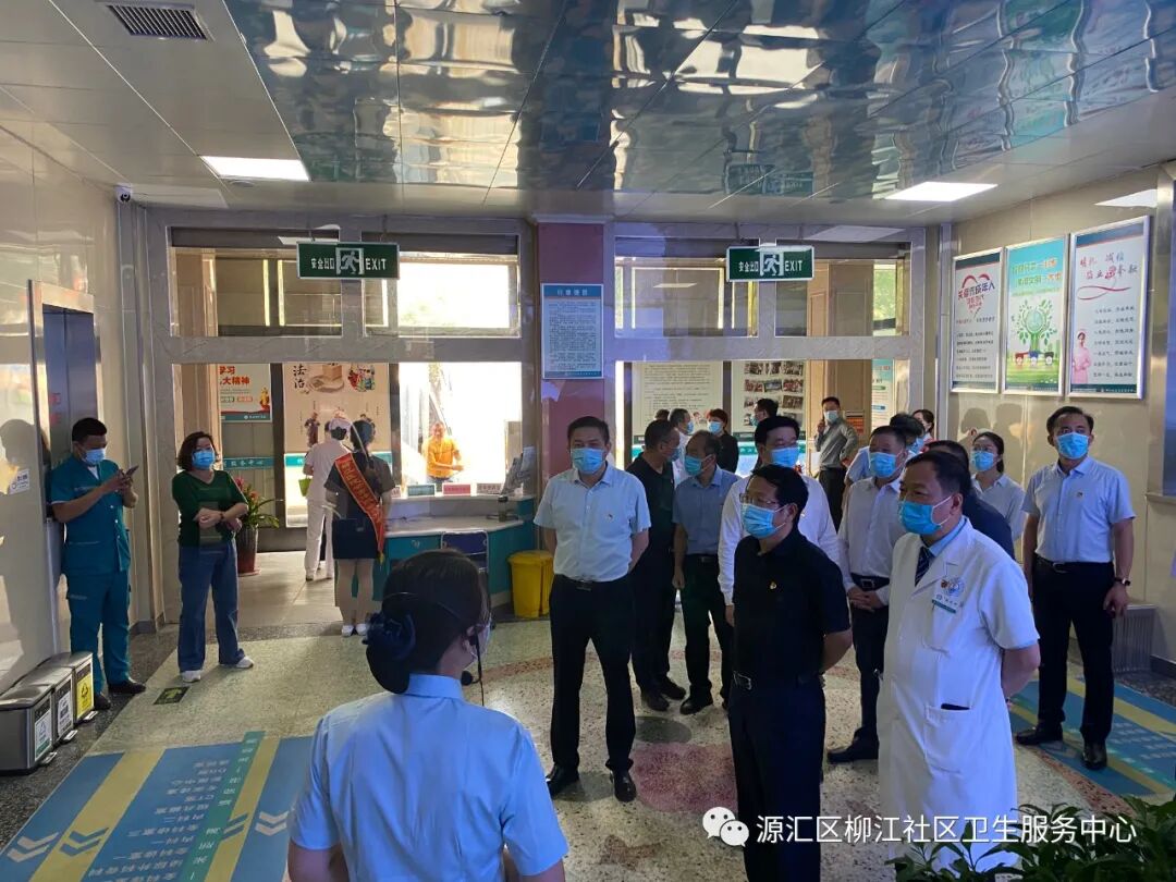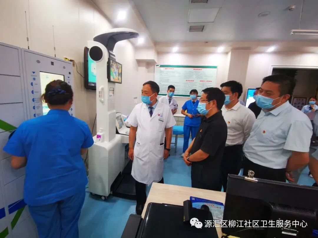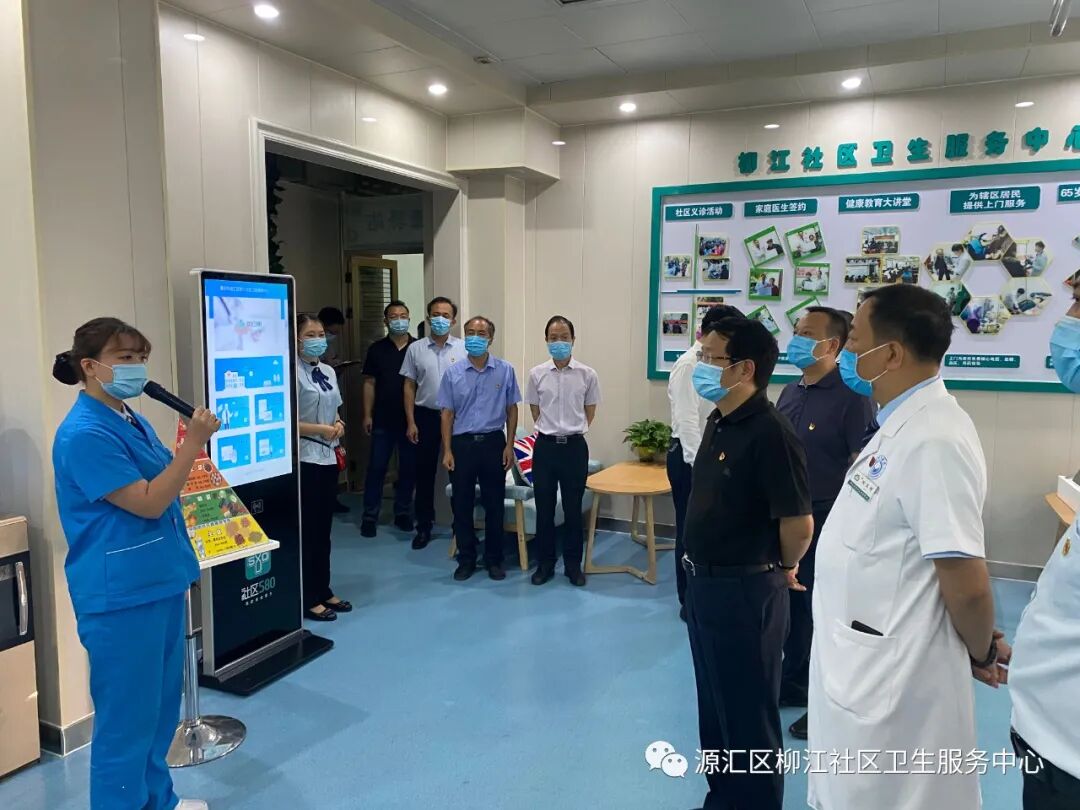 院长徐亚辉及讲解员向蒿书记等领导介绍了中心基本情况。柳江医院成立于1999年,是漯河市交通局下属二级机构,属集体性质一级综合医院。2018年4月份整体转型为源汇区柳江社区卫生服务中心,中心开设有内科、外科、妇产科、五官科、全科诊室、妇保门诊、儿保门诊、预防接种门诊、健康驿站、检验科、影像中心等临床科室医技科室,配备有16排螺旋CT、磁共振等先进诊疗设备100余台件。先后荣获河南省五一劳动奖状、河南省卫生先进单位、河南省青年文明号等省市级荣誉三十余项。按照省、市、区卫健委要求,2019年4月份启动“优质服务基层行”活动,并于同年11月份代表河南省基层医疗机构参加国家卫健委专家组现场考核验收;2019年12月底通过考核验收,达到推荐标准,并在国家卫健委官网公示;今年4月份被省卫健委批准为首批社区医院。