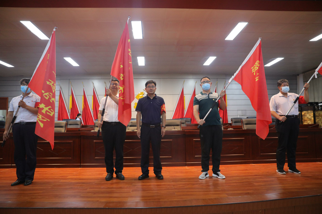誓师大会上,市委书记聂长明分别向党员先锋突击队、项目建设突击队、服务群众突击队、志愿服务突击队进行授旗。