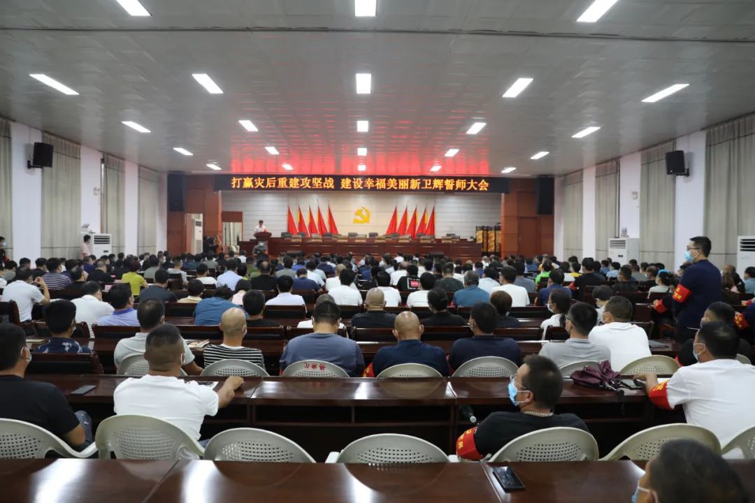 市委副书记、市长李进主持誓师大会,市委副书记孟昕、市人大常委会主任王生群、市政协主席田贞等市四大班子领导出席会议。全市副县级以上领导干部,退休老干部代表,市直各单位主要负责同志,各乡镇党委书记、乡镇长,卫辉市派27个灾后重建工作队及受灾村(居)党支部书记参加了会议。