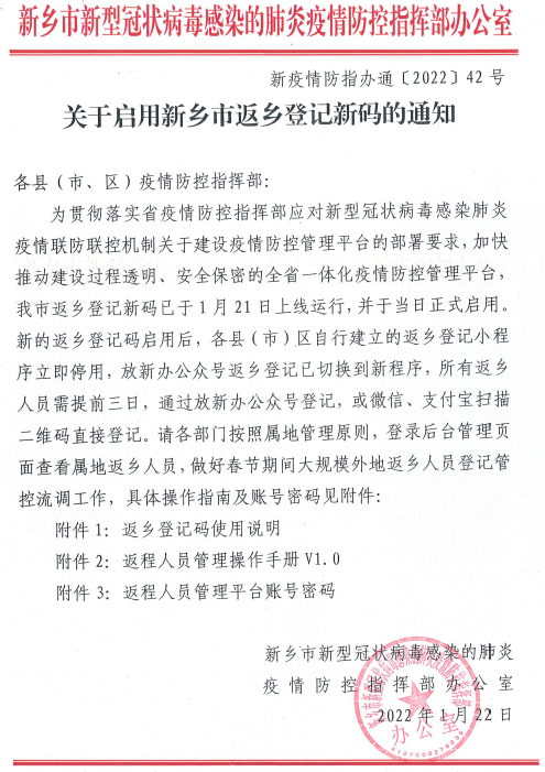 新乡市启用统一的预约返乡二维码,请大家积极转发,原有的卫辉市预约返乡二维码不再使用。