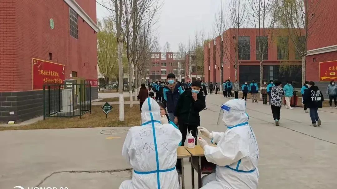 ▲镇一中及镇卫生院核酸检测点有序进行中