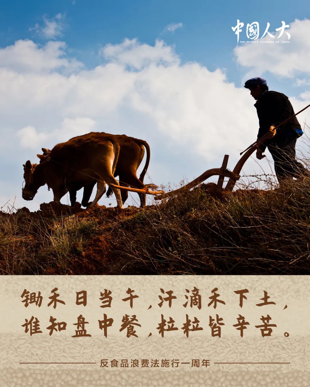 “时人不识农家苦,将谓田中谷自生。”粮食来之不易,珍惜粮食、勤俭节约是尊重劳动的应有姿态,关系着广大人民群众的切身利益。