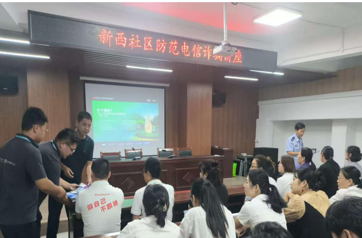 为提高辖区居民的防诈骗意识,有效遏制各类诈骗案件的发生,8月12日,南阳市卧龙区梅溪街道新西社区人大代表联络室与辖区警务室组织开展了一场防范电信诈骗讲座,旨在通过专业讲解和案例分析,增强居民对诈骗手段的识别能力,筑牢社区防诈骗安全防线。