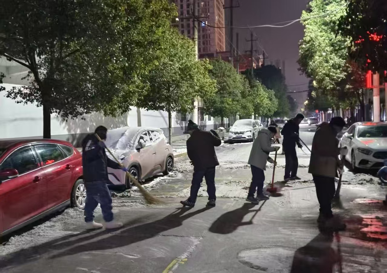 昨晚,在看到气象平台发布道路结冰黄色预警后,街道党工委、人大街道工委立即召开紧急会议。区七届人大代表、党工委书记牛离离强调:“群众安全无小事,必须连夜作战,确保清晨前学校周边、医院周边、大型商超人行通道及老旧小区出入口等重点区域畅通无阻。”街道主要领导带队全员下沉,按照网格划分,实行包干负责制。